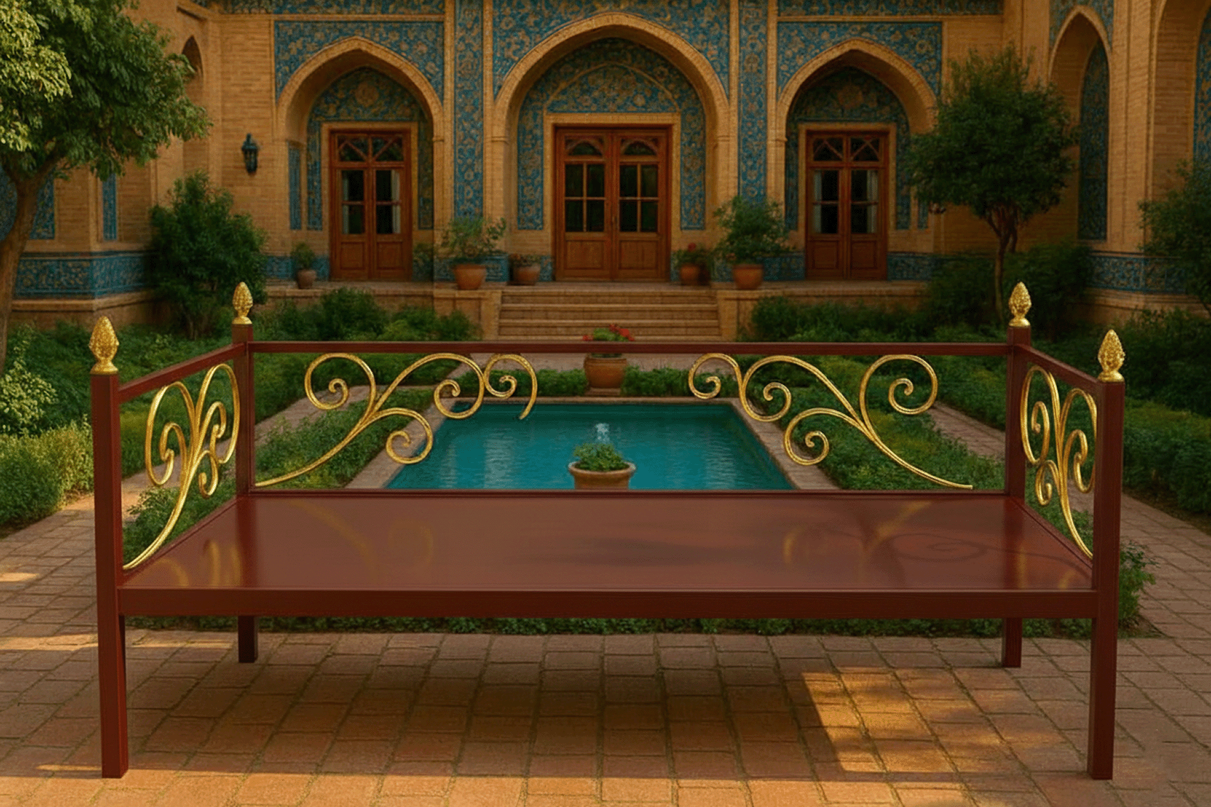 تخت مدل ونوس - تخت سنتی تخت حیاط تخت فلزی تخت نشیمن تخت بازشو تخت باغ تخت آهنی تخت فلزی سنتی تخت رستورانی تخت کافه ای تخت قهوه خانه ای فلزی فضاهای باز فرفورژه