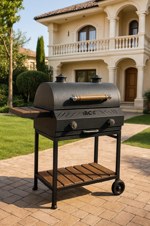 باربیکیو گازی و ذغالی با سایز دهنه ۱۲۰ سانت با میز کار ترمو در سمت چپ (مدل B120-L1)