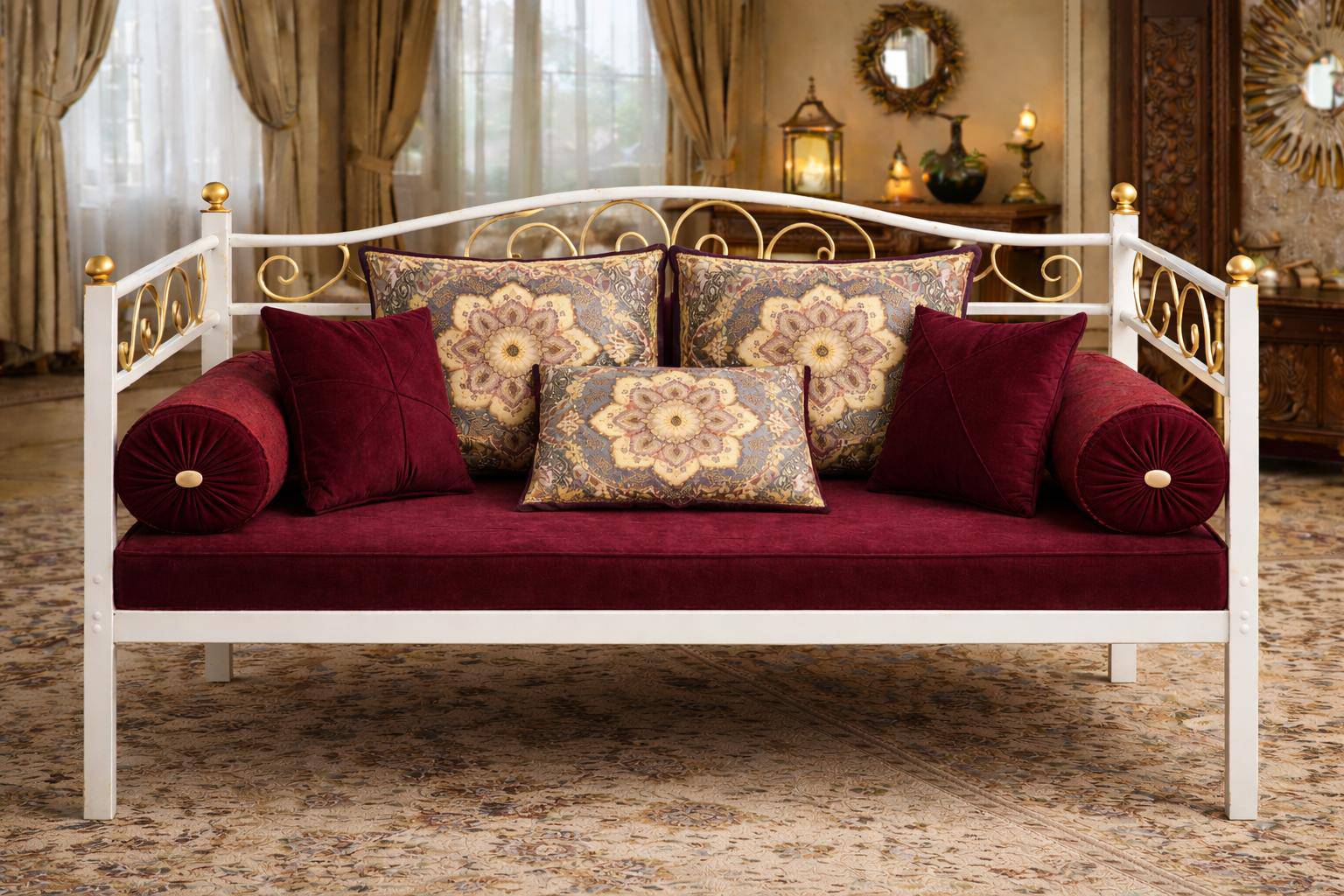 این تختنشین سنتی با طراحی الهامگرفته از نقوش اصیل ایرانی، انتخابی ایدهآل برای ایجاد فضایی گرم، صمیمی و در عین حال لوکس در خانه، ویلا، تراس، روفگاردن یا فضاهای پذیرایی خاص است. ترکیب هنرمندانهی پارچهی طرحدار سنتی با مخمل سادهی باکیفیت، جلوهای چشمنواز و منحصربهفرد به این محصول بخشیده است.
