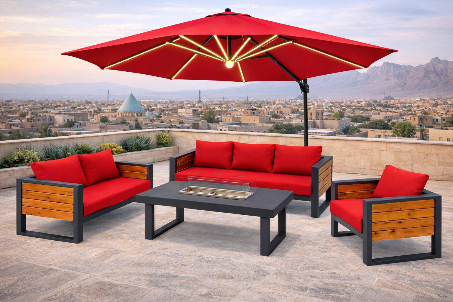 ست مبلمان فضای باز باران و ارغوان، ترکیبی از طراحی مدرن و دوام بالا است.تشک و بالشتکهای ضدآب این ست بهراحتی جدا میشوند تا تمیز و ایمن نگهداری شوند.بدنه فلزی مقاوم مبلها و میز، مناسب استفاده زیر آسمان باز بوده و در برابر باران و آفتاب کاملاً مقاوم است.این محصول علاوه بر رنگ اصلی، در ۵ رنگ متنوع دیگر نیز عرضه میشود.