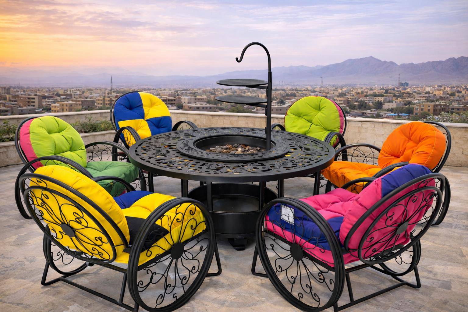 ست مبلمان فضای باز با طراحی مدرن و بدنه فلزی مقاوم، مناسب باغ، ویلا و پشتبام.تشک و بالشتکها ضد آب بوده و بهراحتی جدا میشوند تا در محل تمیز و مناسب نگهداری شوند.بدنه فلزی صندلیها و میز برای استفاده در فضای کاملاً باز و بدون سقف طراحی شده و در برابر باران و تابش آفتاب دوام بالایی دارد. این محصول در چند رنگ متنوع دیگر نیز قابل سفارش است.