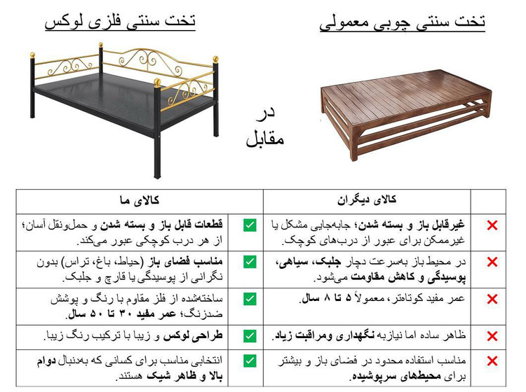 • ارسال تخت با قطعات مجزا برای سهولت